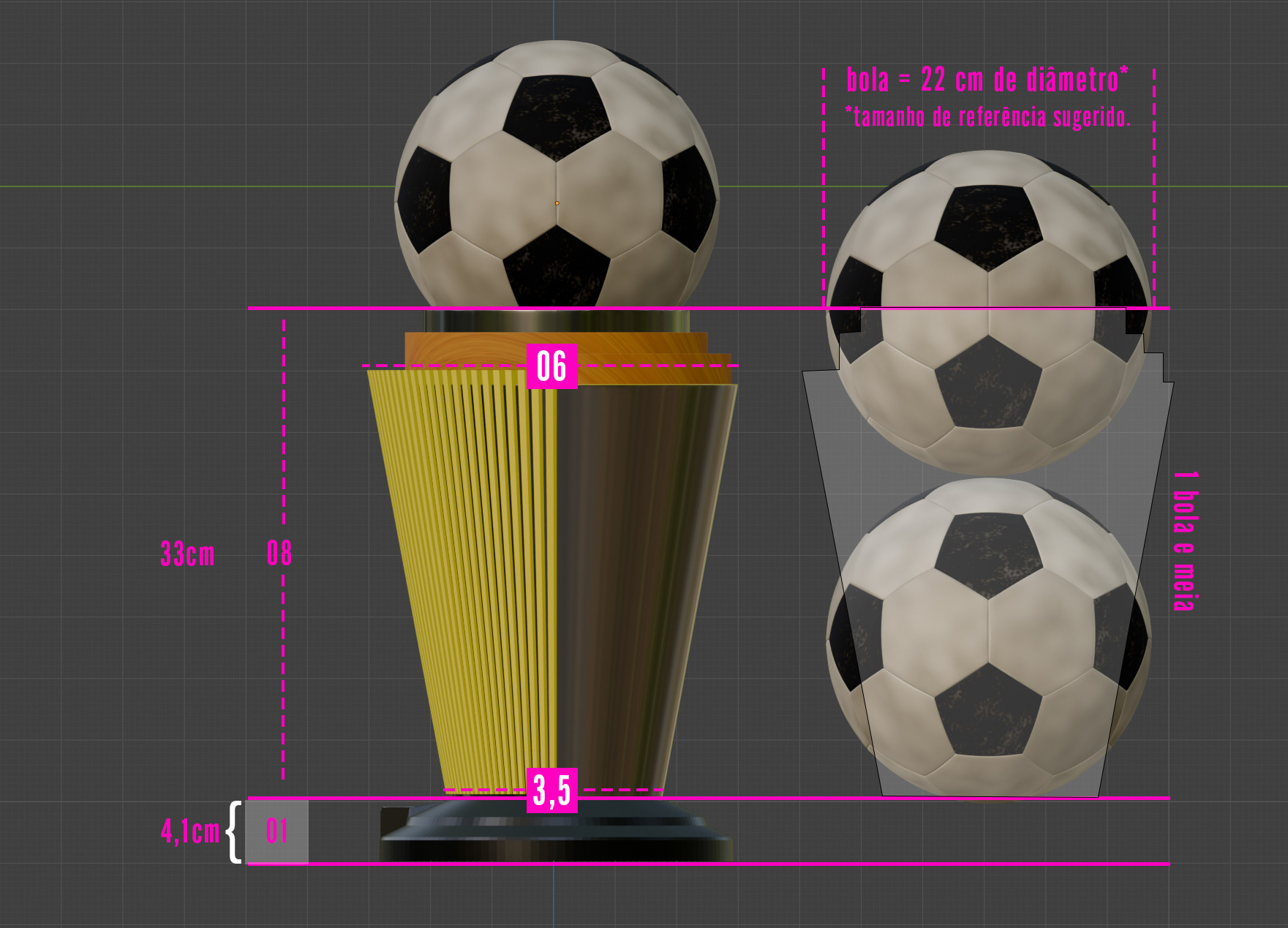 Concept and 3D modeling for a Trophy to a amateur football championship promoted by the Esporte Espetacular TV show.
